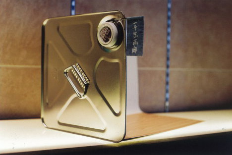 一斗缶を利用した当画廊の狭い店内、その壁面一杯に貼り出された