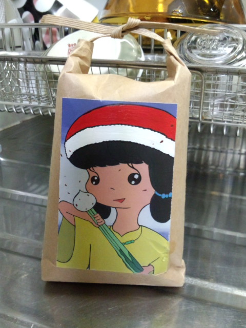 兵庫県村岡産の“天の恵み”2合袋に絵の具で